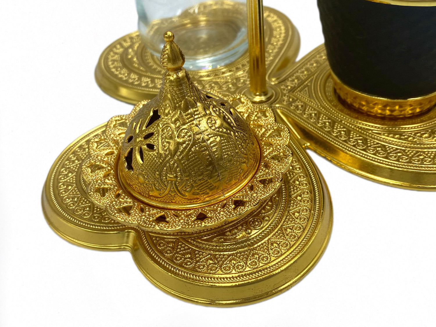 Indulge in the rich tradition of Turkish coffee with the Lavina, a captivating 3-piece cup set crafted in gleaming gold. Immerse yourself in the luxurious feel of the handle as you savor your cup.