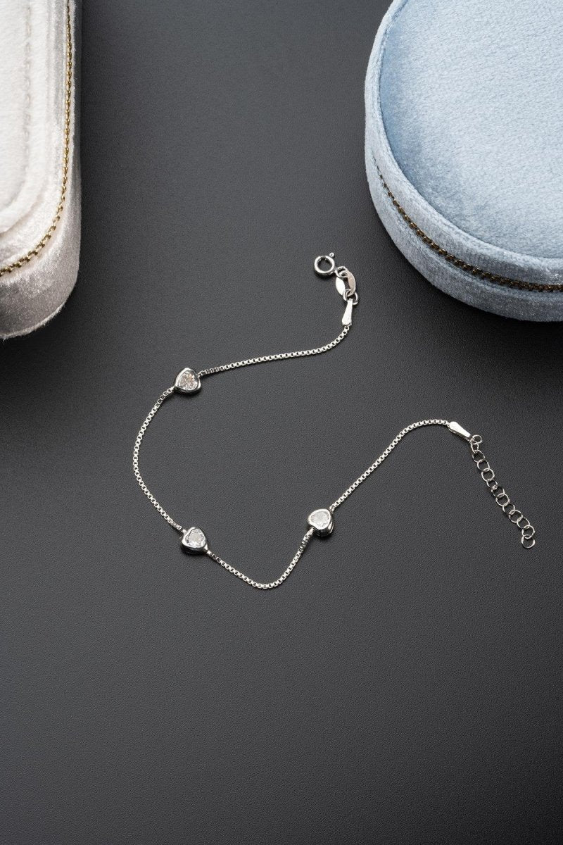 Rhodium Plated Zircon Stone Minimal 3 Star Model Bracelet
