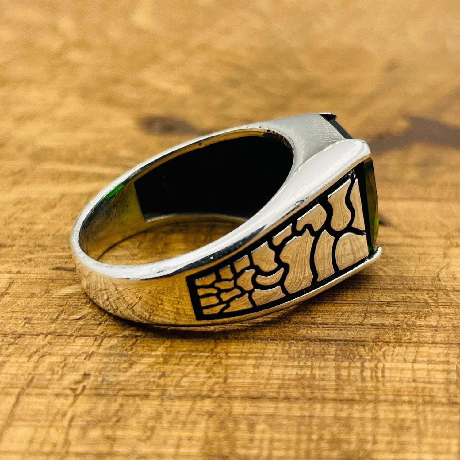 Elevate your style with this stunning Minimalist Square Green Emerald Stone Men's Ring, meticulously crafted in Turkey. The puzzle-patterned design, engraved on sterling silver, beautifully showcases a captivating green emerald stone. Made with high-quality 925 sterling silver, this unique piece weighs approximately 10 grams and has a head size of 13 x 13 mm. Whether as a gift for your father, grandfather, boyfriend, lover, or husband, this handmade item is sure to delight. Each order is shipped with a gift box and an extra surprise gift, adding an element of joy to the unboxing experience. Explore our store's range of unique handmade rings to find the perfect piece to adorn your loved ones. Embrace the beauty of this handcrafted item and enjoy a memorable shopping experience.