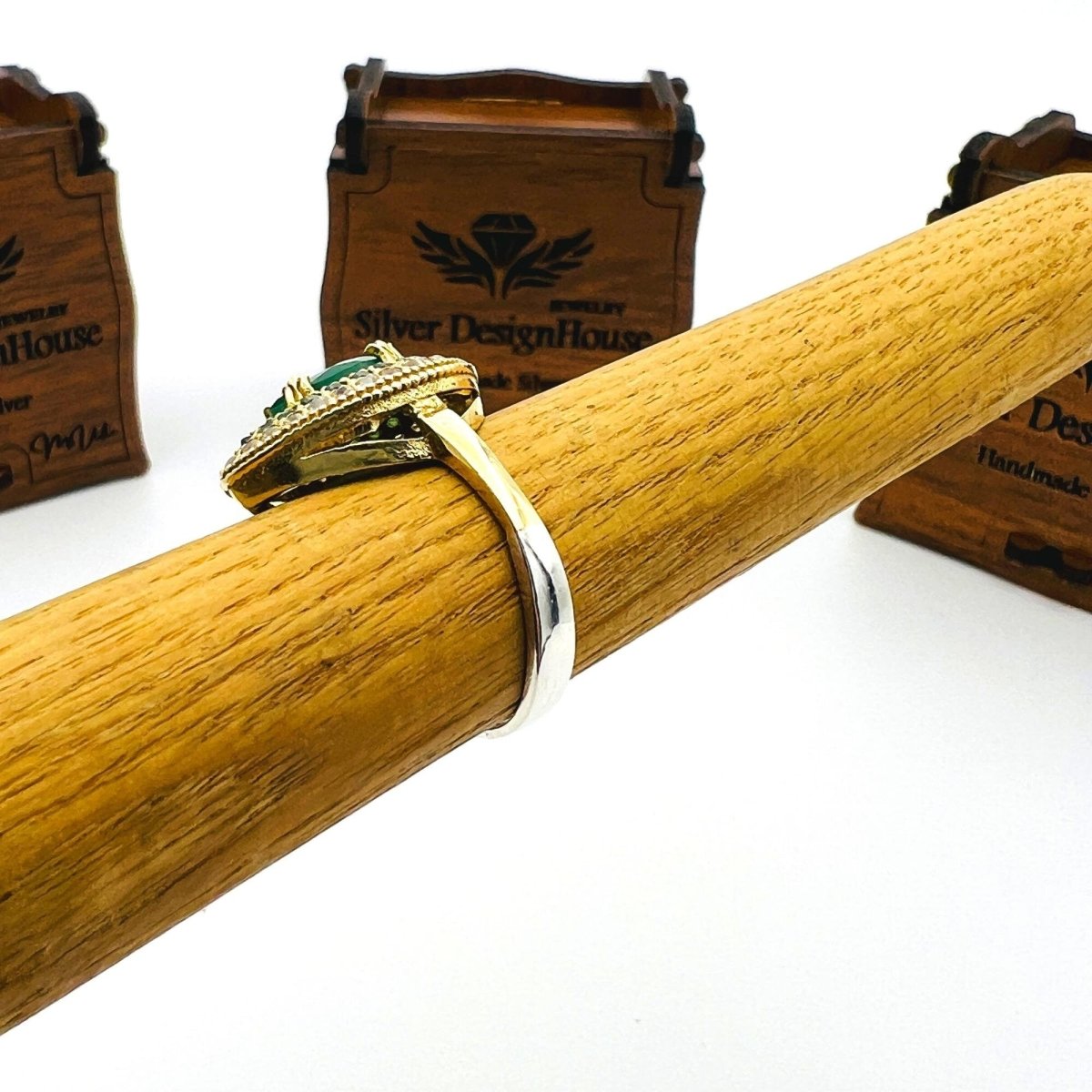 Women's Green Emerald Stone Ring - Turkish Handmade Sterling Silver