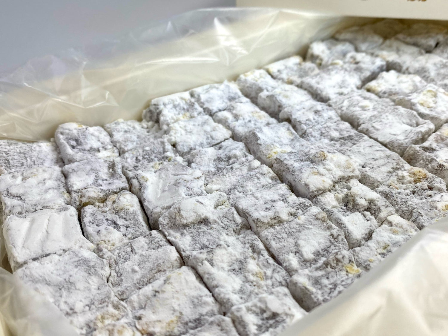 Double Roasted Turkish Delight has become one of the most well known desserts of Turkey due to its exquisite taste. In Double Roasted varieties, the nuts are cooked a second time with the other ingredients, making it perhaps the one of the most delicious varieties of lokum Turkish Delight, often ranking first amongst many Turkish products. It makes an excellent pairing with coffee or can be used as a dessert gift for someone you know.
