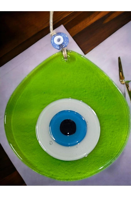 Blue Nazar Beaded Light Green Color Nazar Bead Drop Pattern Handmade Wall Ornament