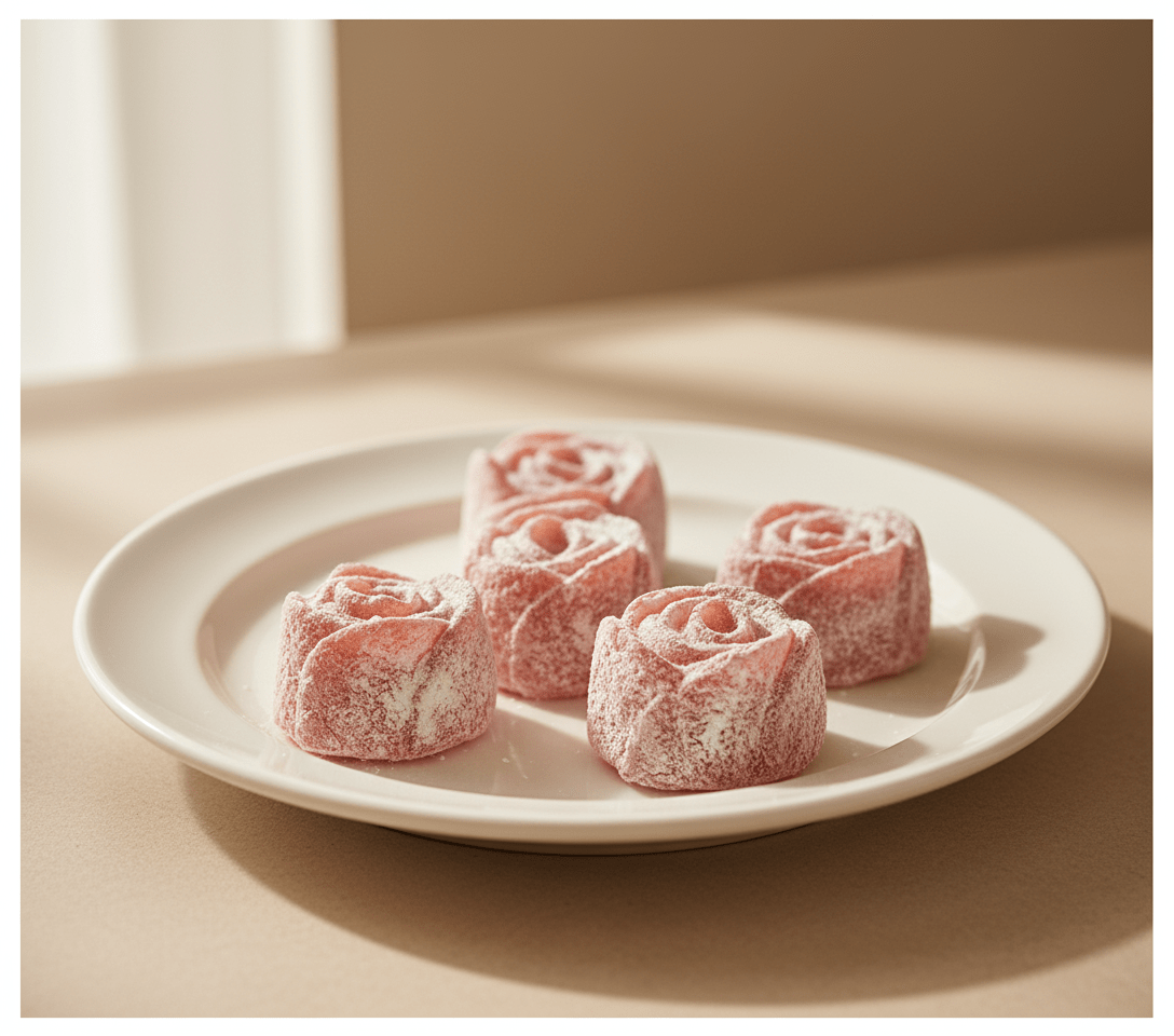 3. Klassischer, duftender Rosengeschmack: Dies ist der ikonischste und begehrteste Lokum-Geschmack, perfekt eingefangen mit einem authentischen, blumigen und süßen Aroma.