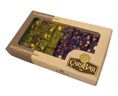 Carsibasi Loukoum Turc Assorti Premium (Pistache Émincée & Rose) - Boîte de Luxe 500g