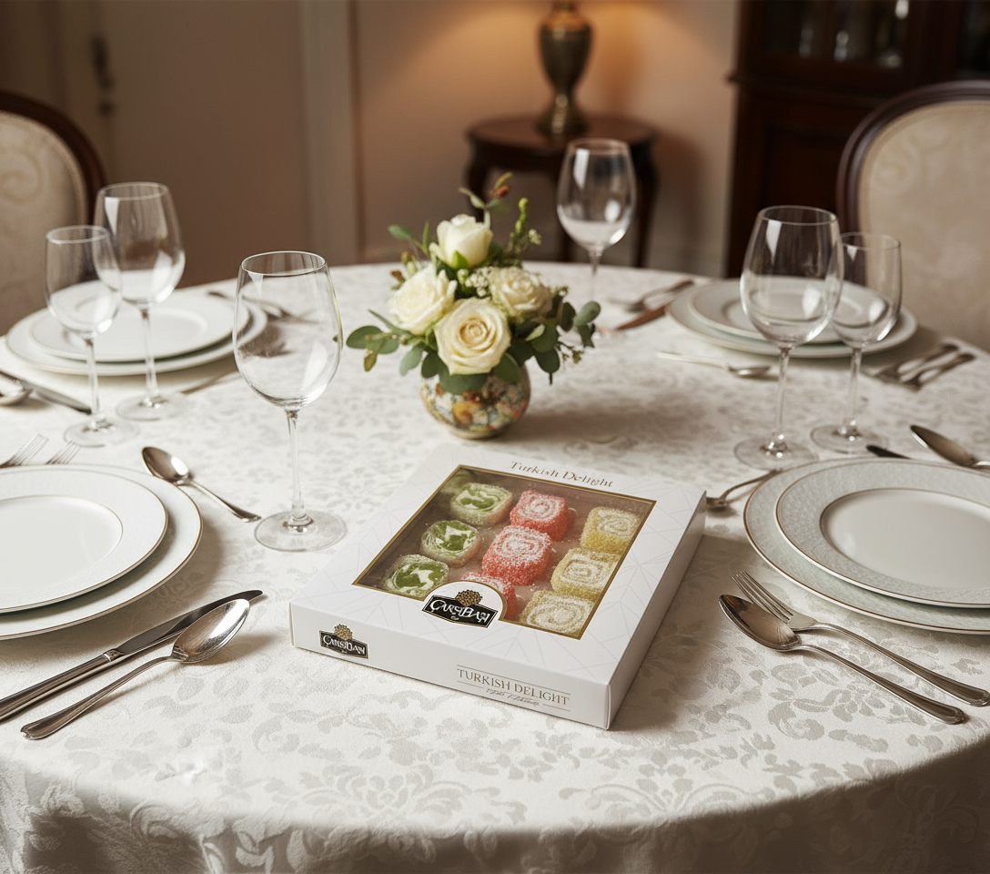 - Style Unique 'Sarma' Rouleau : Le style moderne roulé avec une garniture crémeuse offre une texture unique et sophistiquée qui le différencie du lokum standard.