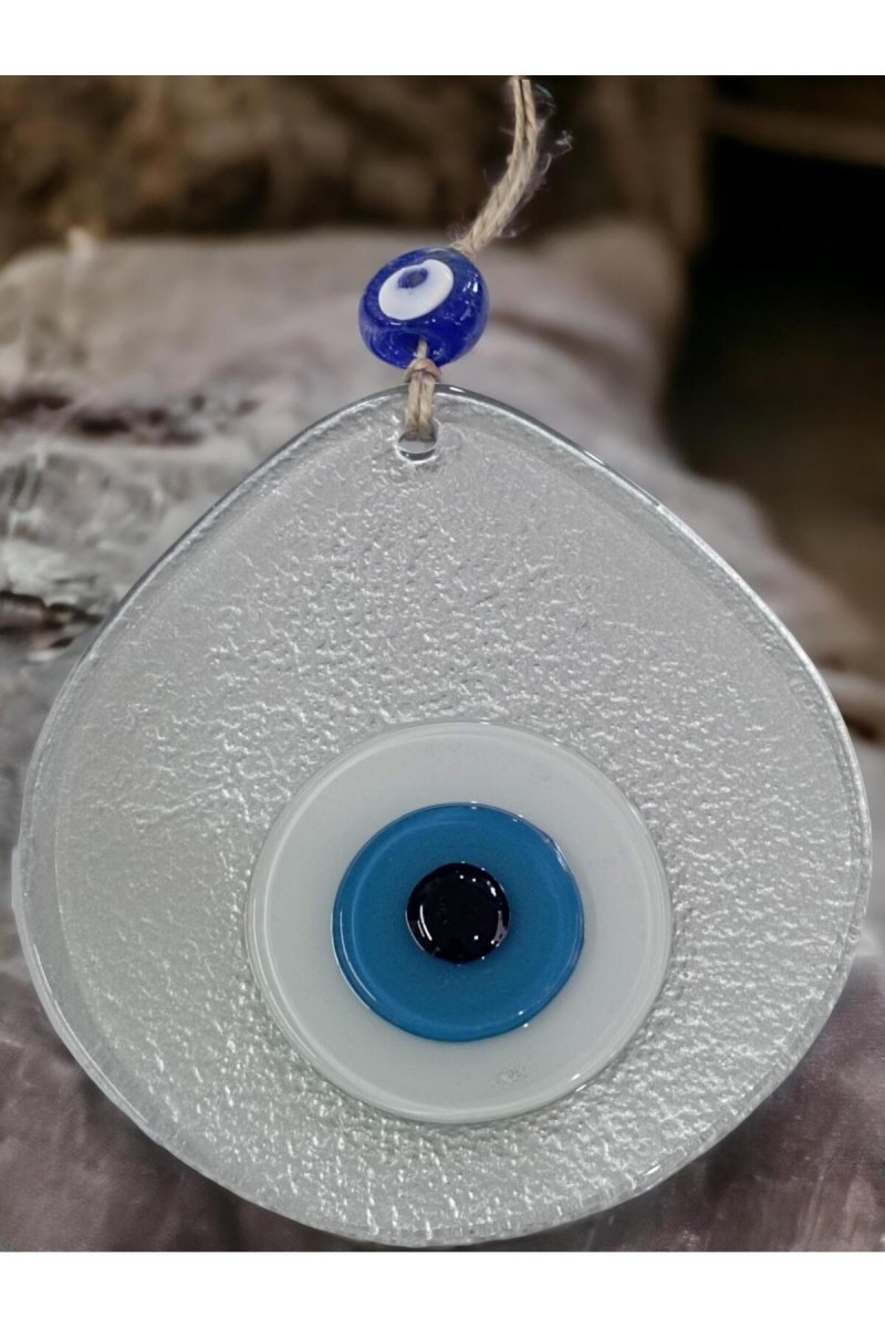 - Matériaux : Perles bleues, argentées et grises enfilées à la main, fond transparent