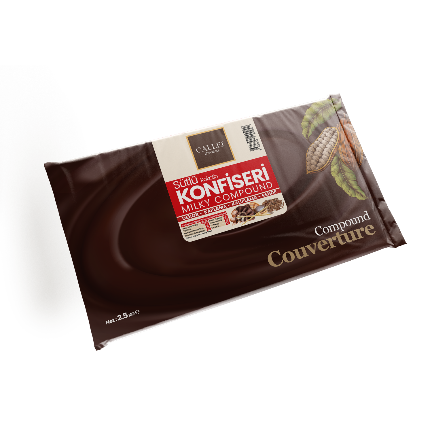 De hoeksteen van populaire confiserie, Callei's **Milky Chocolate Compound** levert de universeel geliefde, troostrijke smaak van klassieke melkchocolade in een hoogwaardig 2,5 kg-formaat. Ontworpen voor B2B-gebruik, garandeert het consistente kwaliteit en efficiënte verwerking voor al uw vorm- en bedekkingsbehoeften.