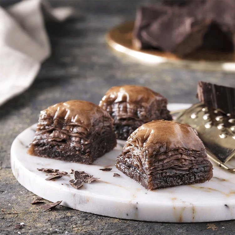 Chocolade Baklava is een speciale Midden-Oosterse baklava die gemaakt is van een speciaal filodeeg dat bestaat uit gekneed meel met een hoog cacaogehalte. Laag na laag van zoet, knapperig en boterachtig filodeeg en cacao worden gecombineerd met de overige ingrediënten, en vervolgens in de oven gebakken. Ten slotte wordt het bedekt met een zoete siroop en terug in de oven geplaatst waar het zijn zoete, chocoladeachtige, knapperige heerlijkheid afmaakt.