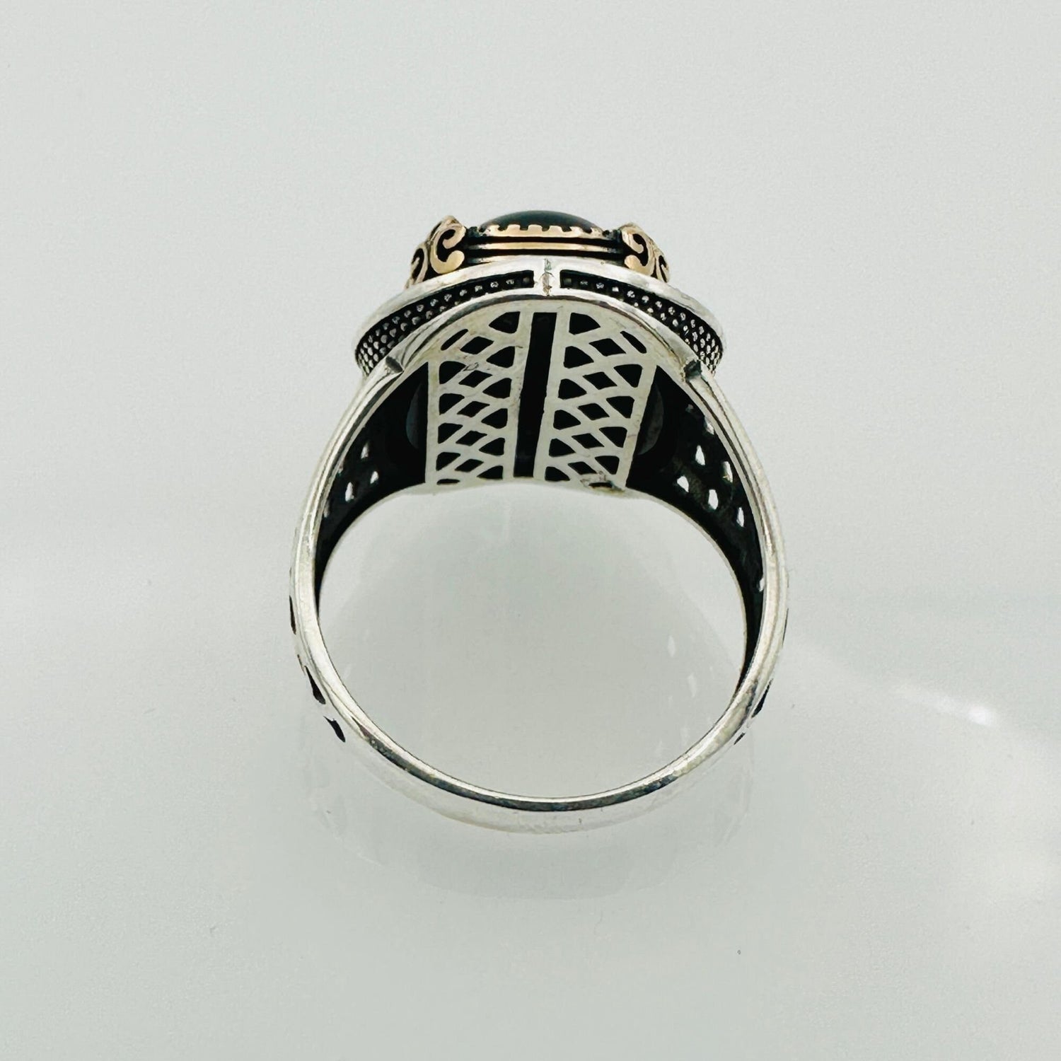 • Handgemaakte herenring met een natuurlijke zwarte onyxsteen