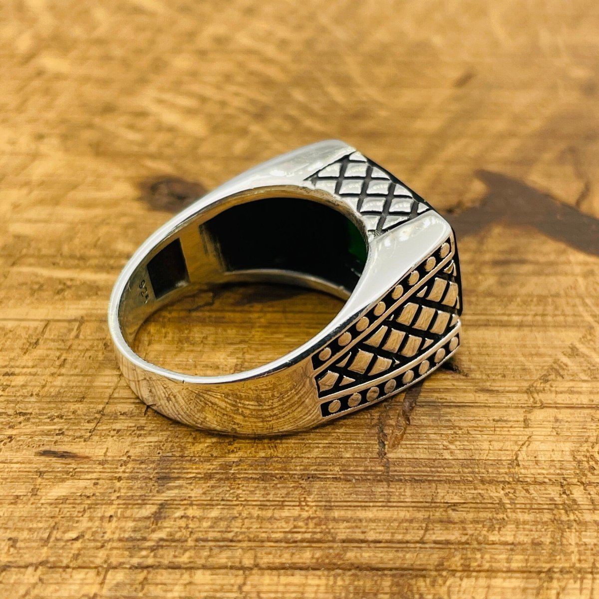 Heren Rechthoekige Groene Zirkoon Steen Zilveren Ring - Turks Handgemaakt