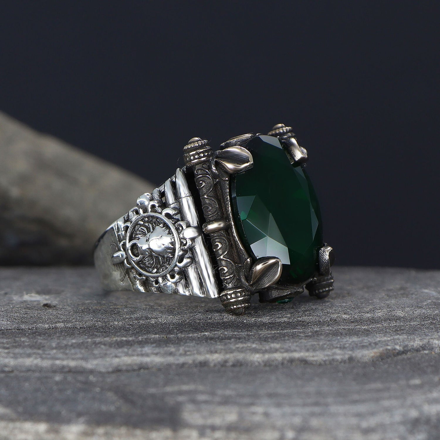 Verhoog je stijl met een zilveren herenring met groene zirkonsteen