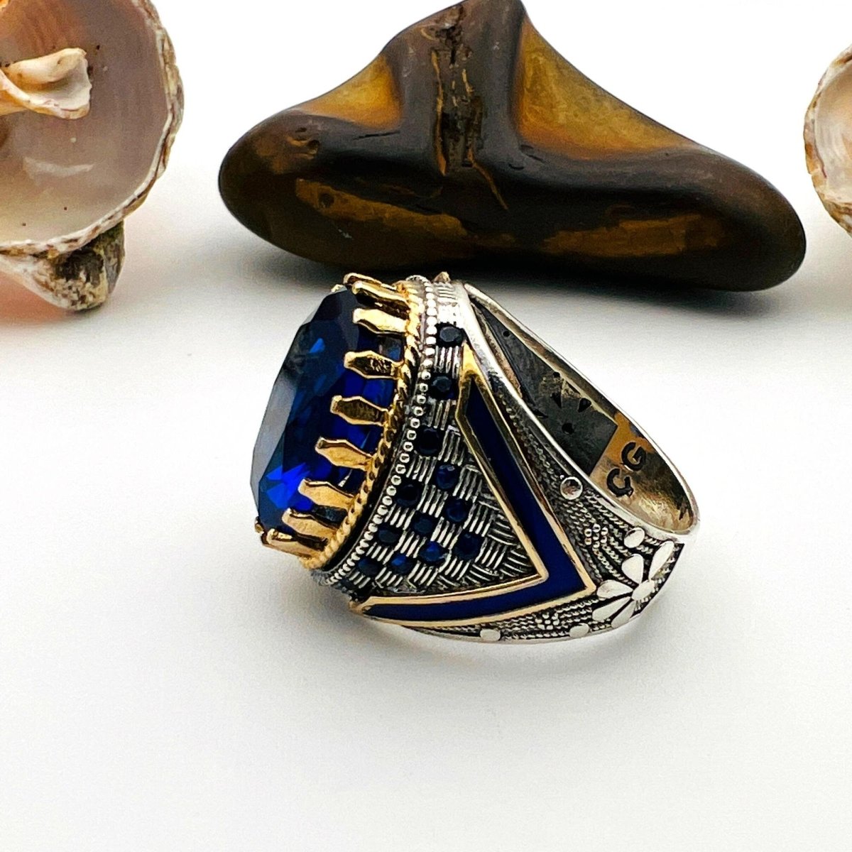 - Royal Sapphire Design: Features a striking blue sapphire stone in a classic oval setting.