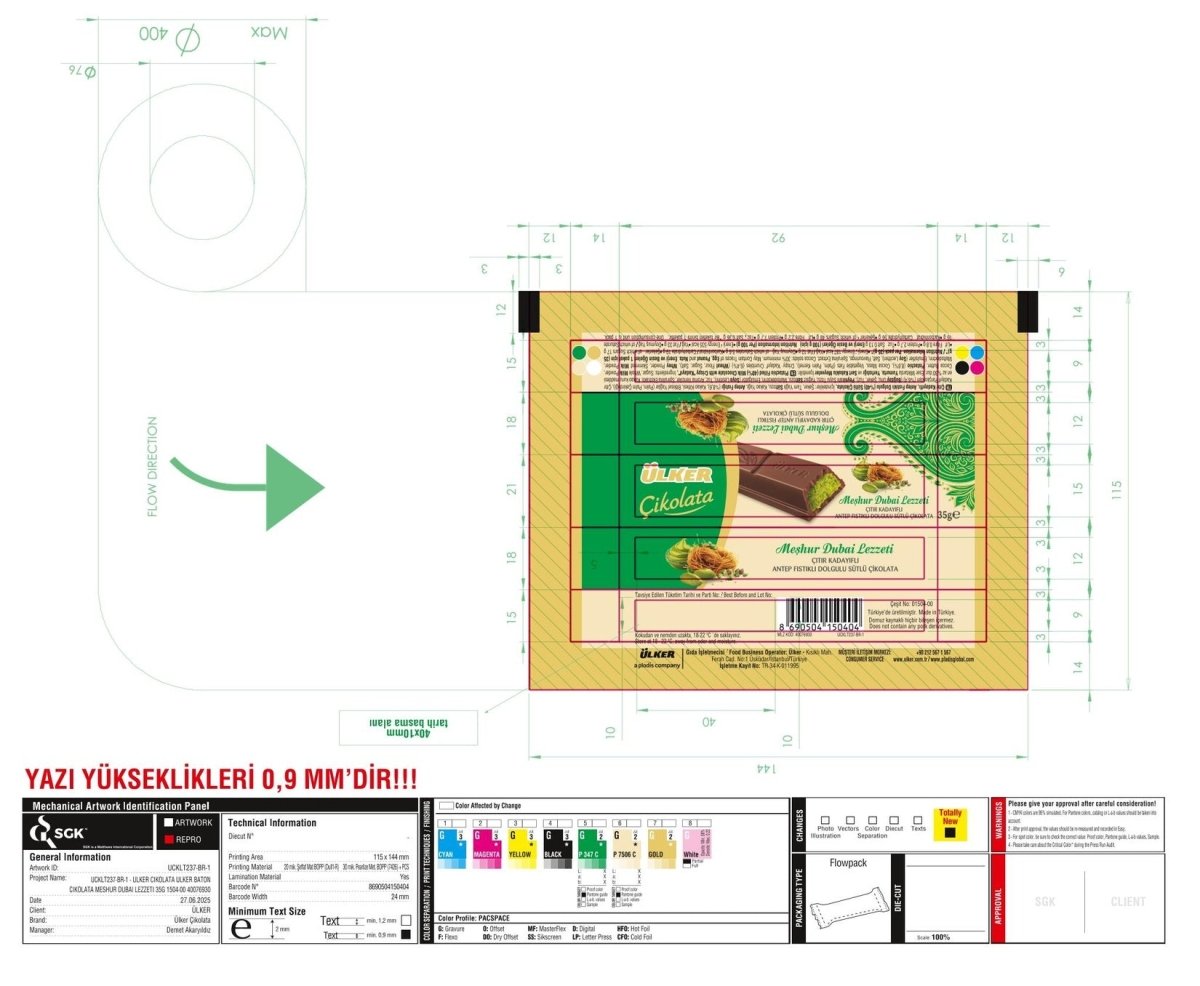Ervaar de luxueuze harmonie van rijke melkchocolade, premium Antep pistachenoten en krokante geroosterde kataifi in elke hap. Deze Ulker Dubai Chocoladereep combineert traditionele Midden-Oosterse smaken met Ulker’s beroemde chocoladevakmanschap, wat zorgt voor een zachte en knapperige traktatie die wereldwijd geliefd is.