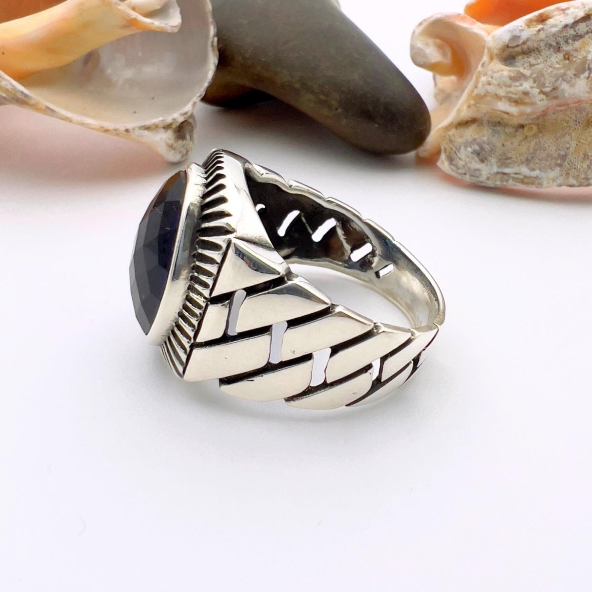- Turkse handgemaakte herenring met een blauwe ovale saffiersteen
