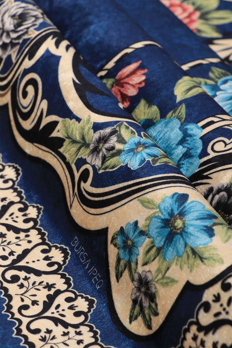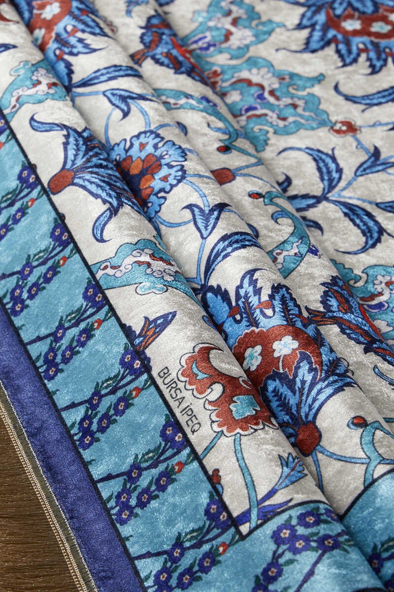 Verfraai je interieur met de schoonheid van Bursa Ipek – Bestel nu je marineblauwe fluwelen gebedskleed!