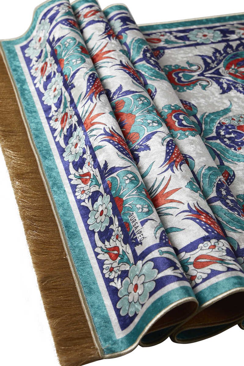 Ontworpen met een zijdezachte fluwelen textuur, biedt dit gebedskleed een zachte en comfortabele ondergrond voor je gebeden. De watergroene kleur geeft een verfrissende toets aan elke kamer, terwijl het Turkse motief en tegelpatroon de decoratieve uitstraling versterken.