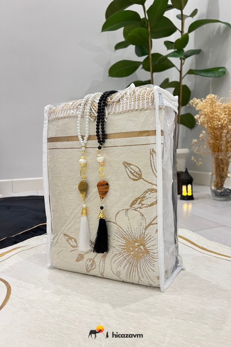 Geniet van de elegantie van deze dubbele gebedskleedset met hartthema, voorzien van speciale chenille weving en een bijpassende parelrozenkrans. Perfect als cadeau, deze set biedt duurzaamheid, stijl en spirituele verbinding in één pakket.