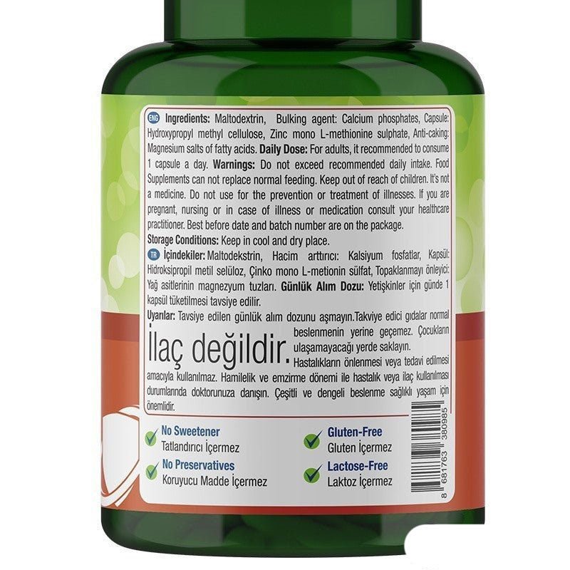 | Zinc (L-OptiZinc®) | 15.0mg | 150% |