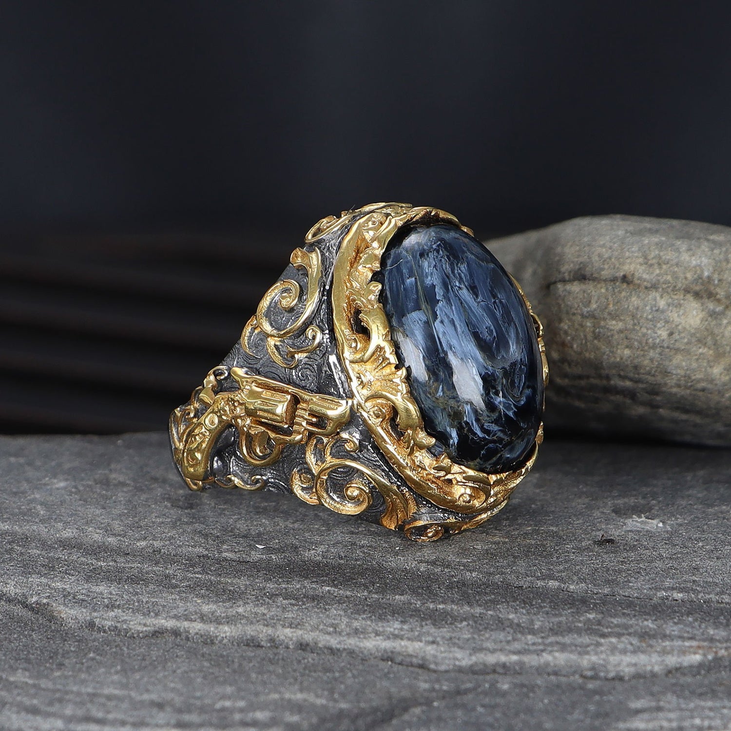 Tesbihevim | Armed Model Grinding Coated Petersite Stone Silver Ring for Men - TryAladdin