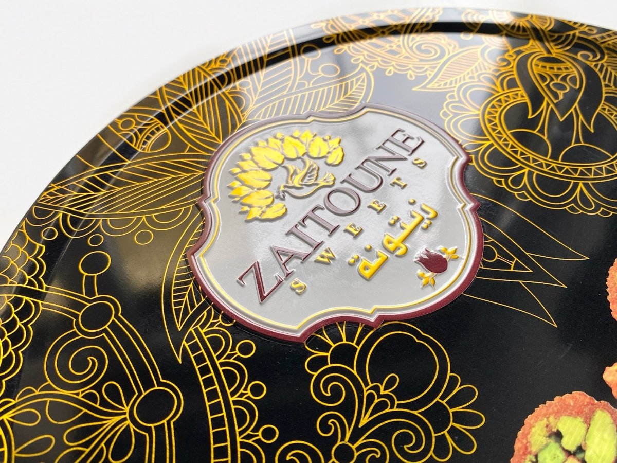 De Aleppo Kadayif met Pistachenoten is gemaakt van gescheurde filodeeg en hele pistachenootstukken, wat een heerlijke kadayif baklava creëert. Verpakt met een deksel van metaal ondersteund door een nylon hoes, om de bescherming van het product tegen externe factoren zoals vocht te waarborgen en de kwaliteit en smaak te behouden.