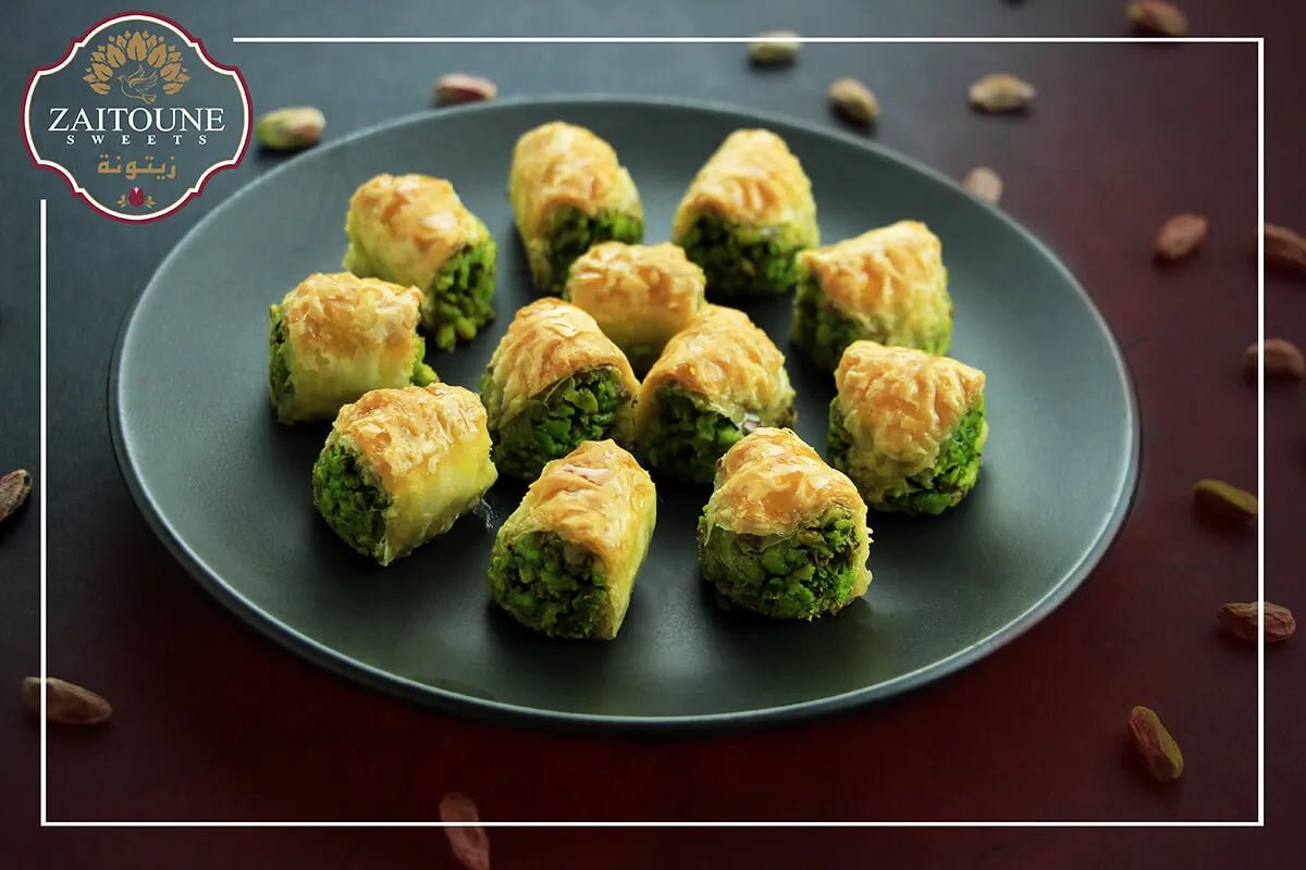 Kol & Shkor met Honing van Zaitoune is gevuld met Turkse desserts, bestaande uit gezoete gebakjes gemaakt van dunne lagen deeg, gevuld met pistachenoten en gezoet met honing. Verpakt met een deksel van metaal ondersteund door een nylon hoes, om de bescherming van het product tegen externe factoren zoals vocht te waarborgen en de kwaliteit en smaak te behouden.