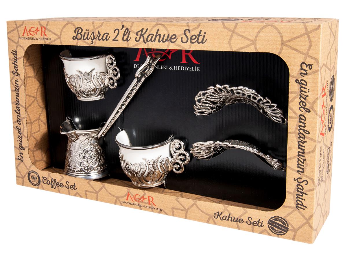Acar | Turkish Coffee Set of Two + Coffee Pot - Gilded - White - TryAladdin