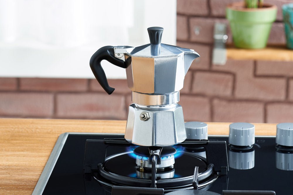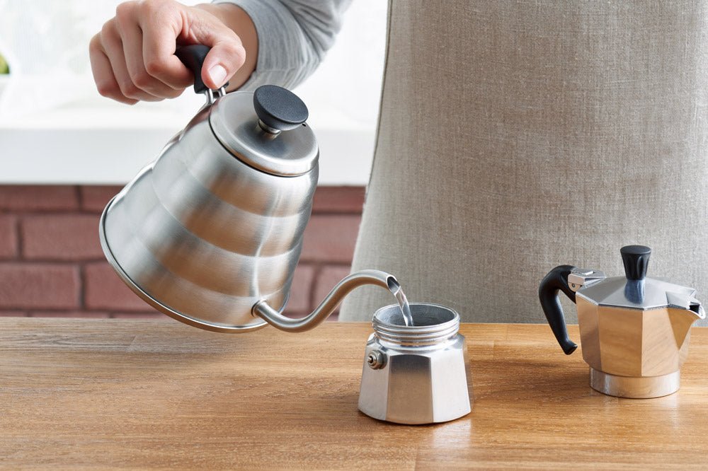 2) Put 18-20 grams of ground espresso coffee in the filter part of the Moka pot, and shake gently to distribute it evenly.