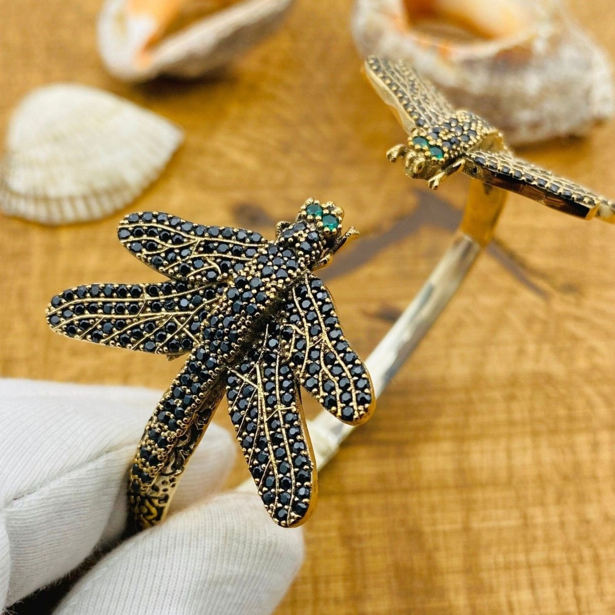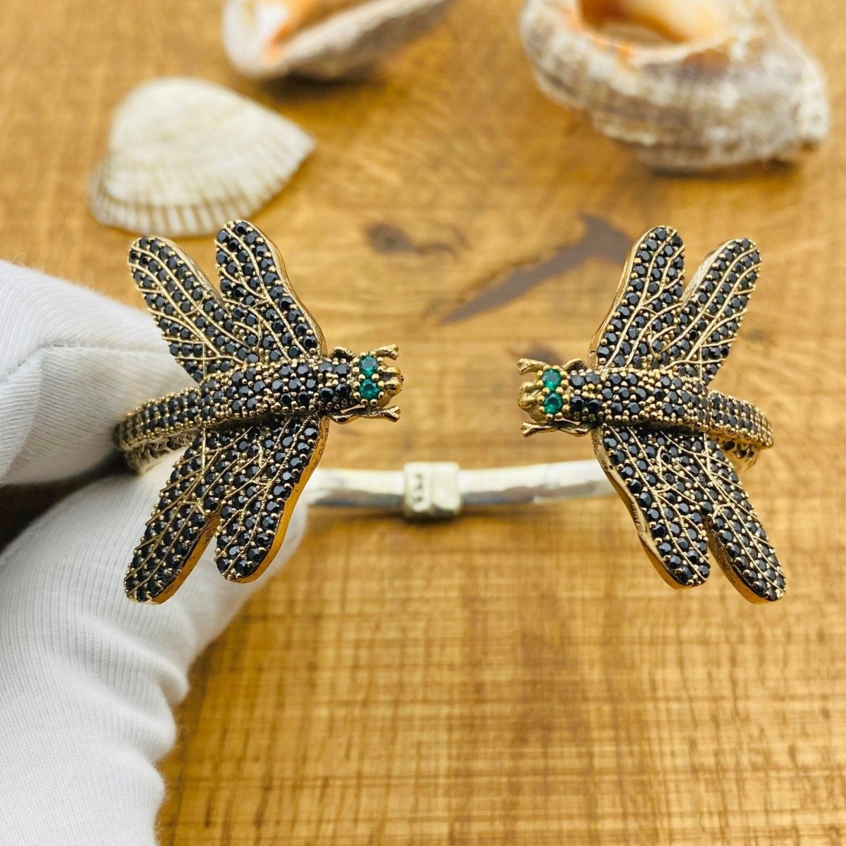 This elegant black onyx stone bracelet features a butterfly animal design, crafted with 925 sterling silver. A perfect gift for her.